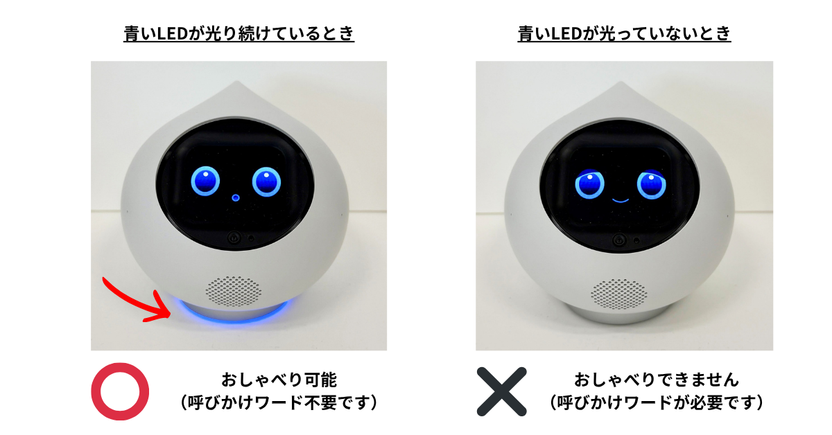 ※おしゃべりできる状態の間は、青いランプが点灯しています。